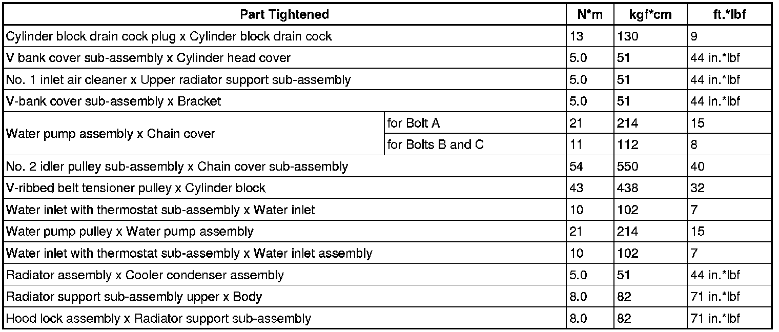 SERVICE SPECIFICATIONS: 2GR-FSE COOLING: TORQUE SPECIFICATIONS