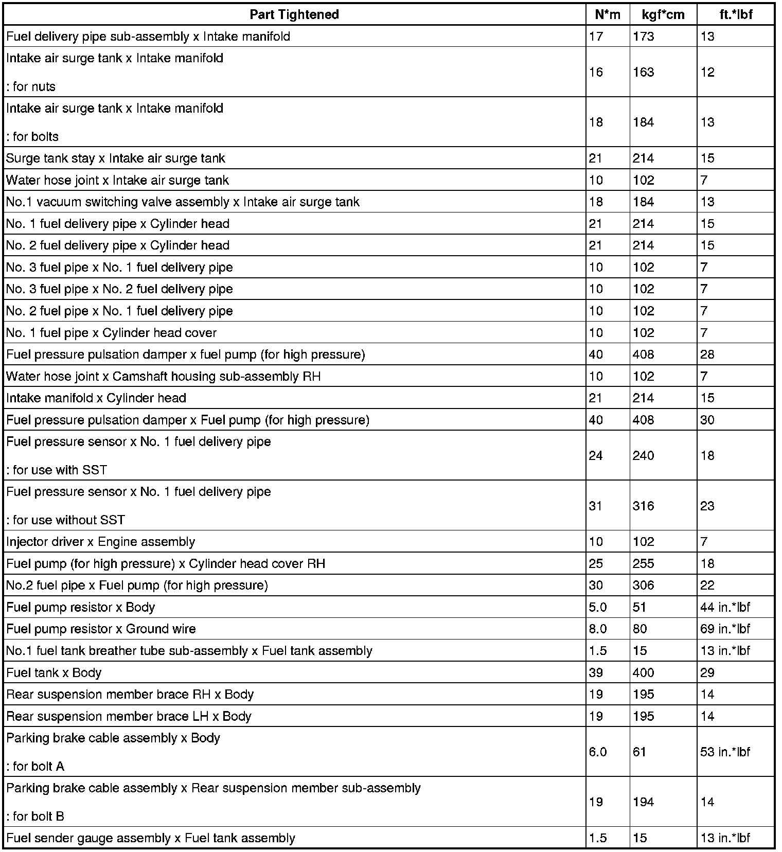 SERVICE SPECIFICATIONS: 2GR-FSE FUEL: TORQUE SPECIFICATIONS