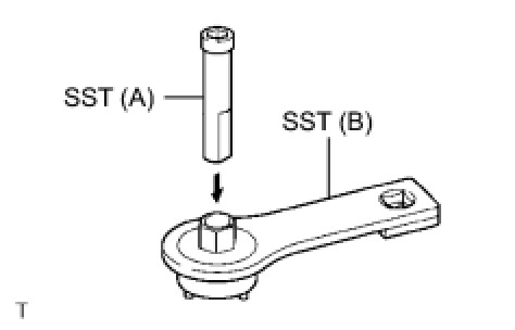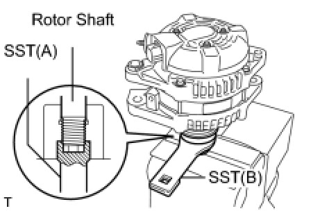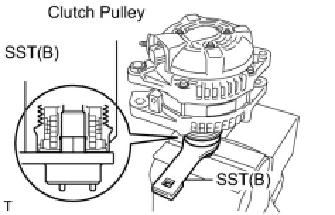(f) Loosen the pulley by turning SST (B) in the direction shown in the illustration.