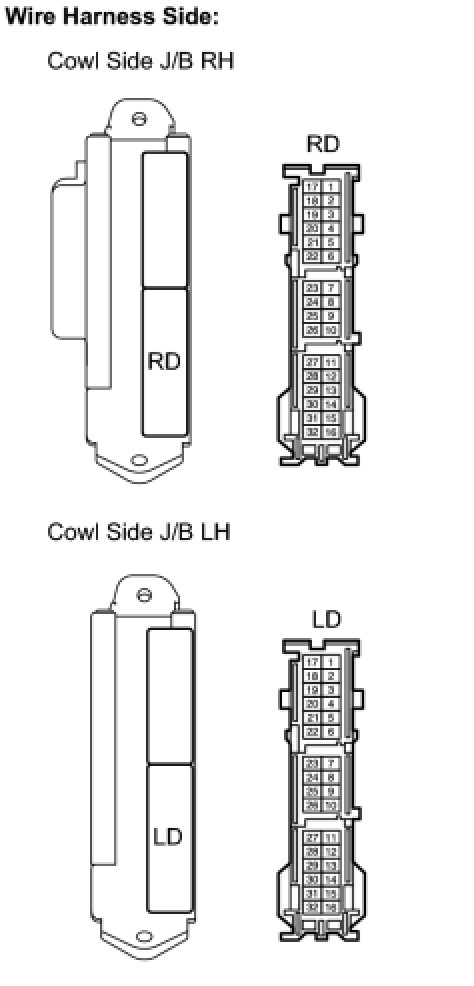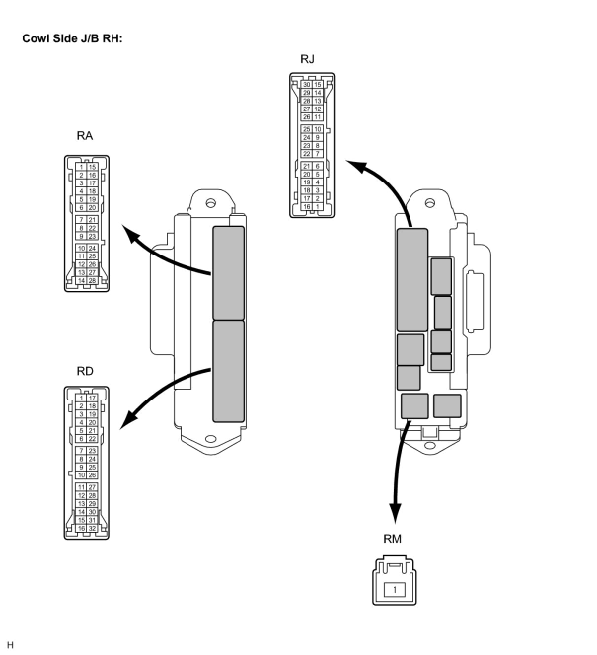 (1) Disconnect the cowl side J/B RH connectors.