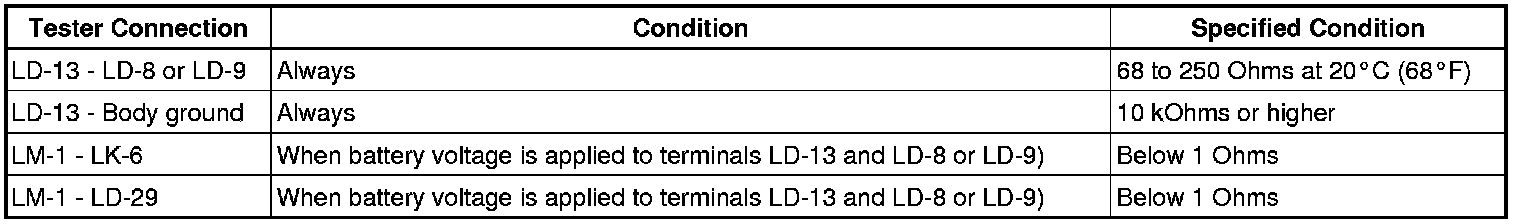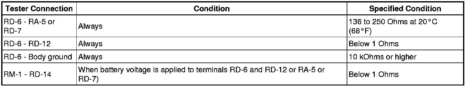 (1) Measure the resistance according to the value(s) in the table below.