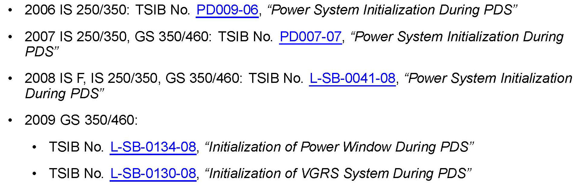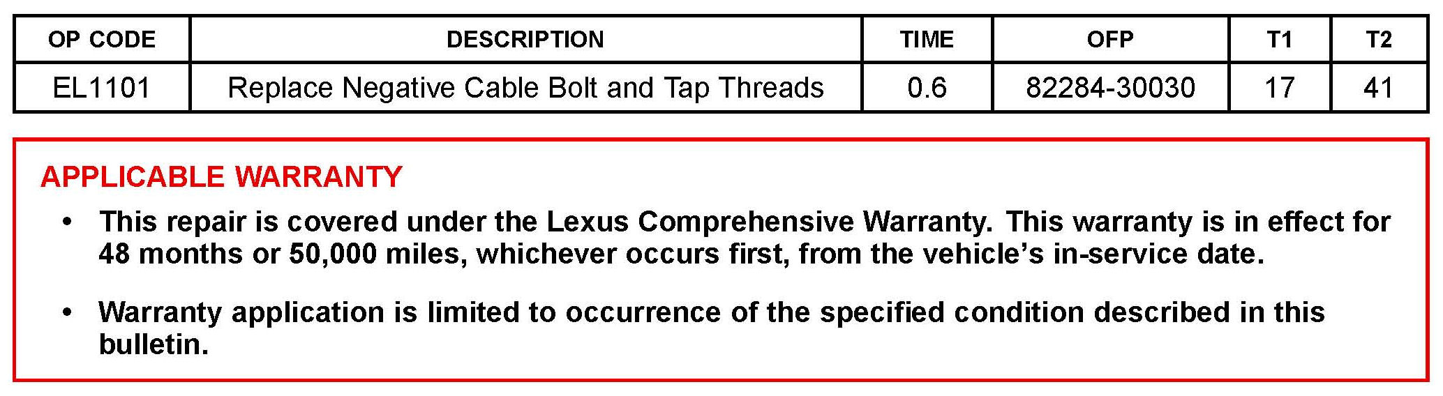 Some IS and GS series vehicles may exhibit an intermittent no crank condition. An updated negative cable bolt is available to address this condition. Follow the procedure in this bulletin to replace the negative cable bolt.