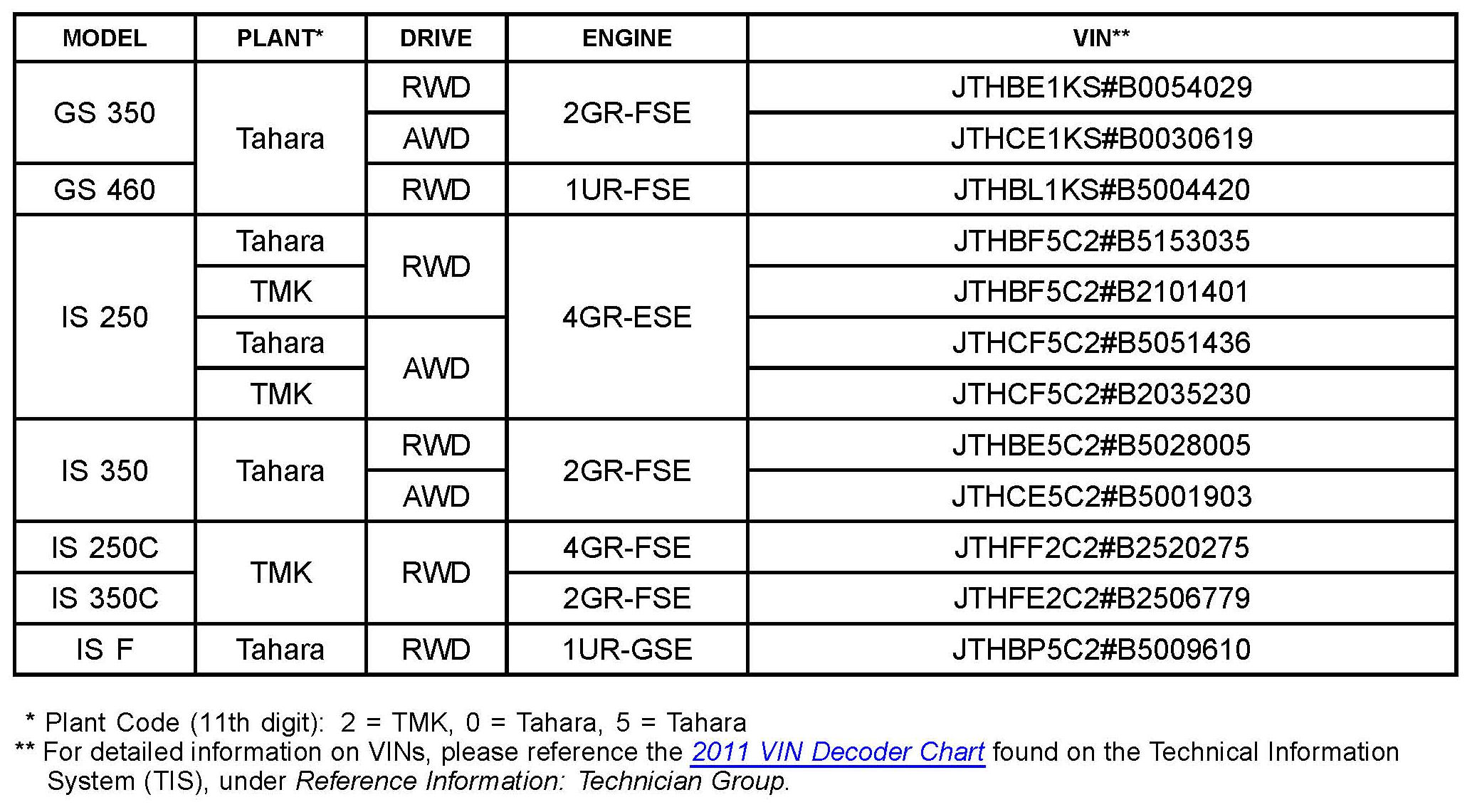 This TSIB applies to vehicles produced BEFORE the Production Change Effective VINs shown.