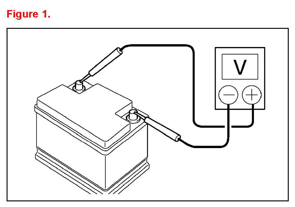 A. Measure the battery voltage between the negative (-) and positive (+) terminals of the battery.