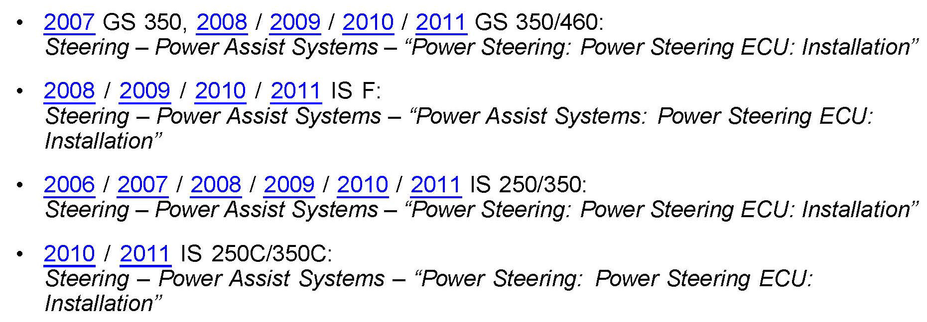 G. Refer to the appropriate Repair Manual to install the Power Steering ECU.