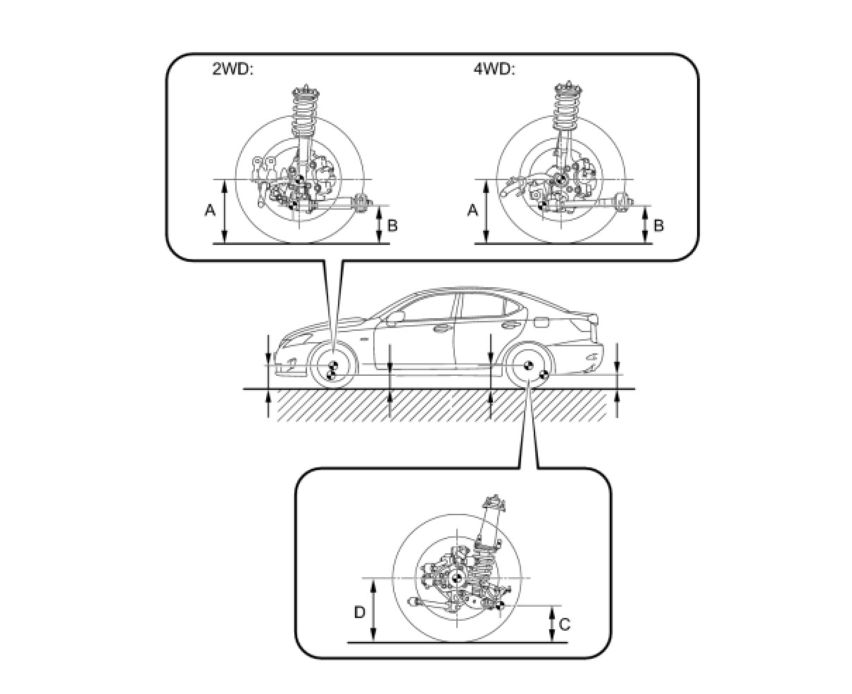 - Before inspecting the wheel alignment, adjust the vehicle height to the specified value.