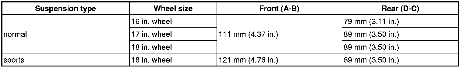 If the dimension of the front lower suspension arm assembly changes 2 mm (0.079 in.), the camber will change approximately 15' (0.25°).