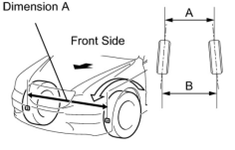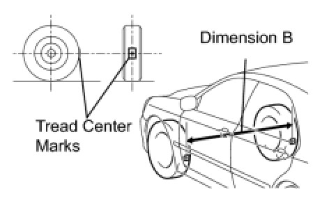 (d) Put tread center marks on the rearmost points of the front wheels and measure the distance between the marks (dimension B).