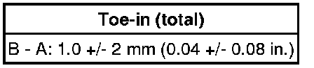 If the camber adjust cam is turned 1 notch to the left when viewing from the front of the vehicle (the bolt moves approximately 1 mm (0.04 in.) to the outside), the camber will change by approximately -0°08' (0.04 in.).