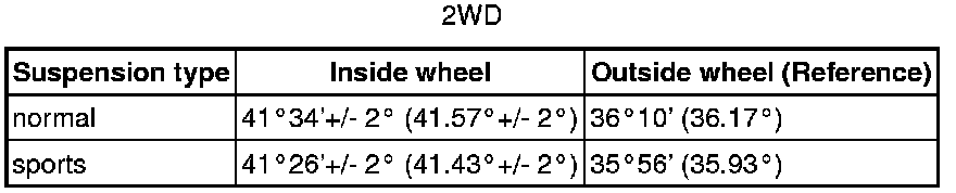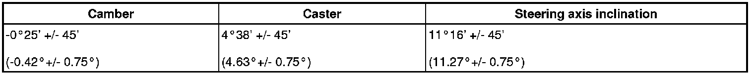 - The maximum tolerance of right and left difference for the camber and caster is 30' (0.5°) or less.