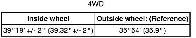 If the right and left inside wheel angles differ from the specified range, check the lengths of the right and left rack ends.