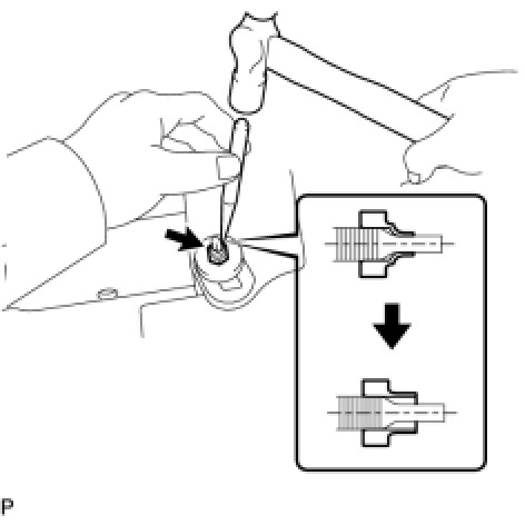 (a) Using a chisel and hammer, unstake the No. 1 tilt steering adjusting nut.