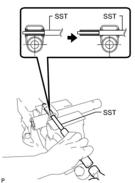 (a) Using SST, remove the tilt lever return spring from the brake away bracket and steering tilt lever.