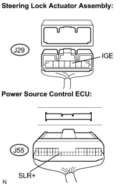 5. CHECK HARNESS AND CONNECTOR (STEERING LOCK ACTUATOR ASSEMBLY - POWER SOURCE CONTROL ECU)