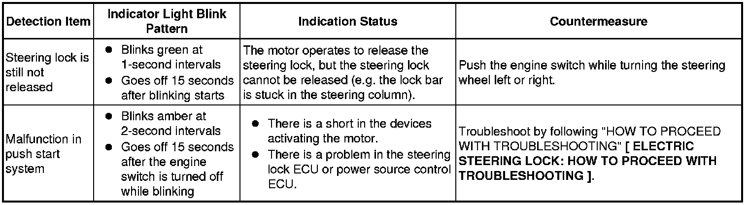 (a) The steering lock ECU blinks the LED indicator of the engine switch when any of the following problems occurs in the system: