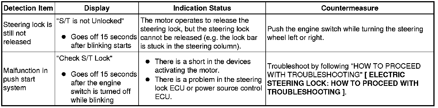 STEERING COLUMN: ELECTRIC STEERING LOCK: DIAGNOSIS SYSTEM