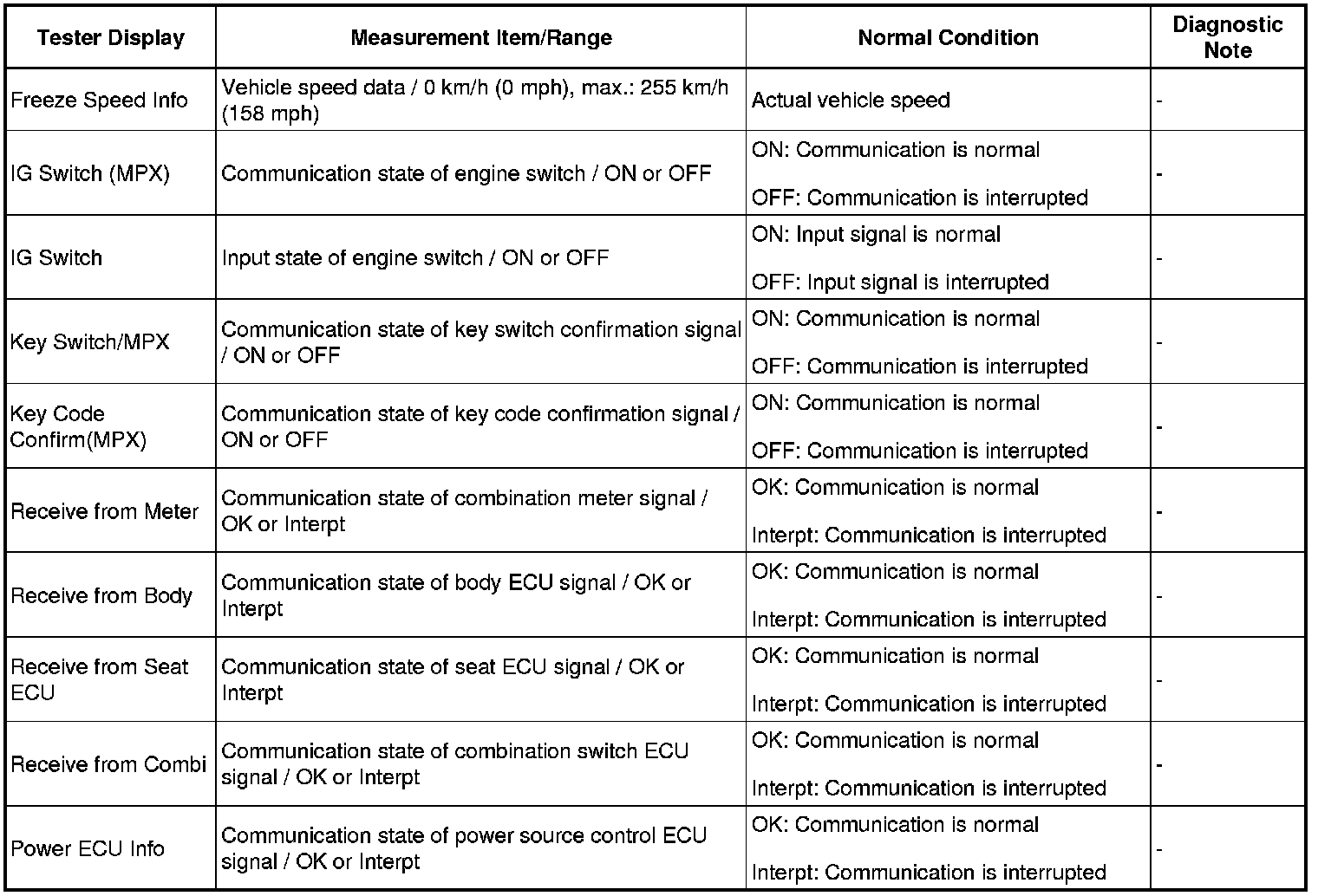STEERING COLUMN: POWER TILT AND POWER TELESCOPIC STEERING COLUMN SYSTEM: FREEZE FRAME DATA