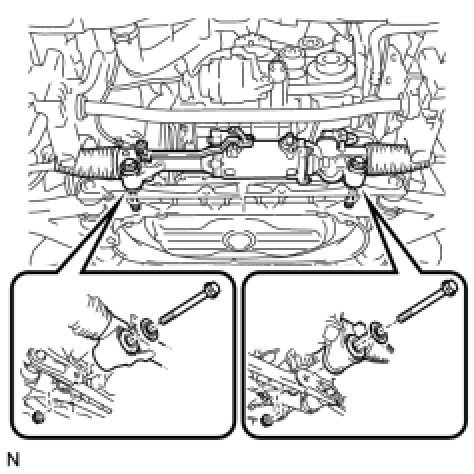 (a) Install the power steering gear assembly with the 2 bolts, 2 washers, and 2 nuts.