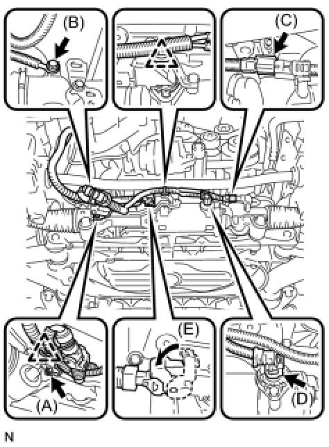 (c) Connect wire harness connector (E) to the power steering gear assembly and securely lock the connector.