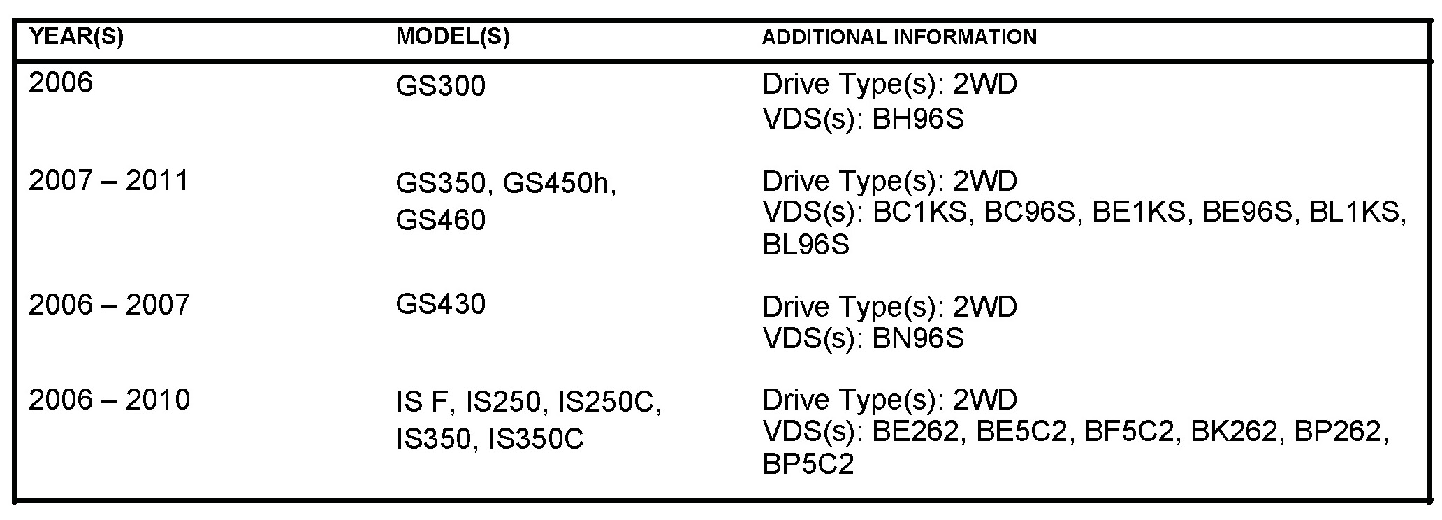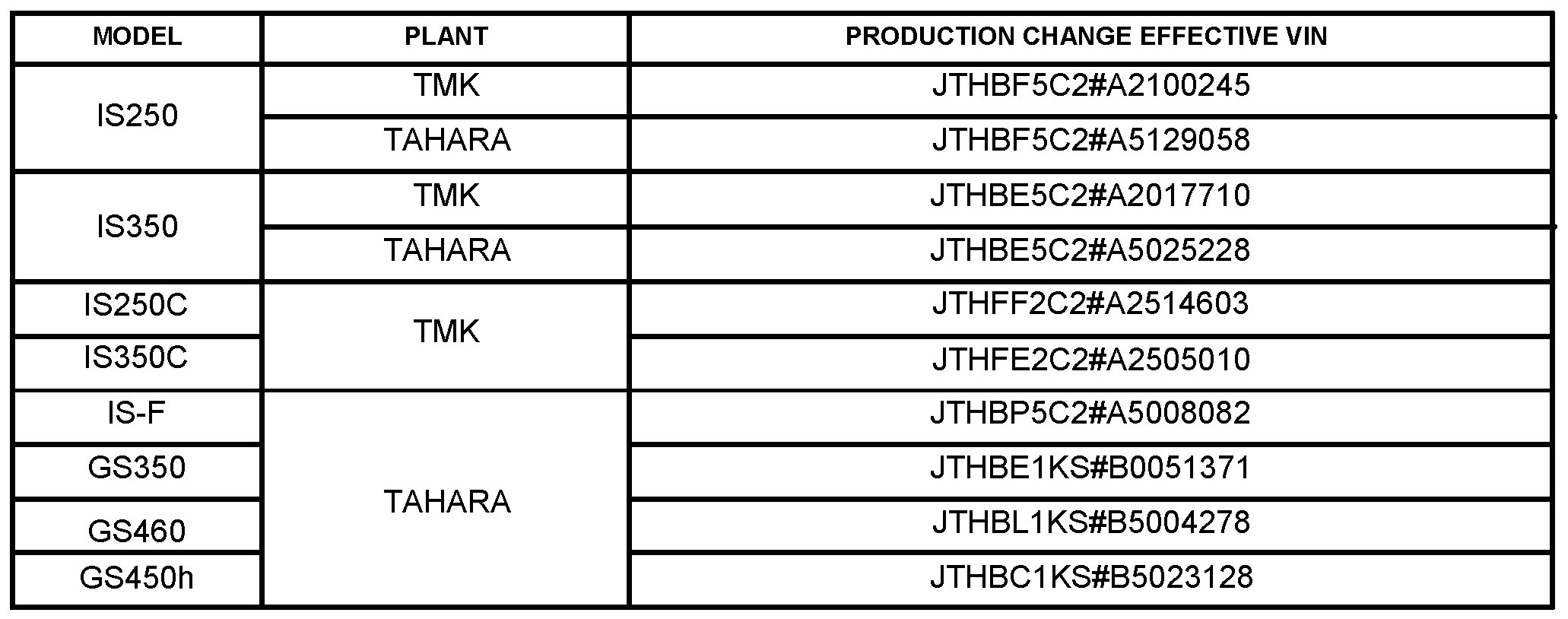 This TSB applies to all 2006 model year GS300 and 2006 - 2007 model year GS430 vehicles, and to vehicles produced BEFORE the Production Change Effective VINs shown.