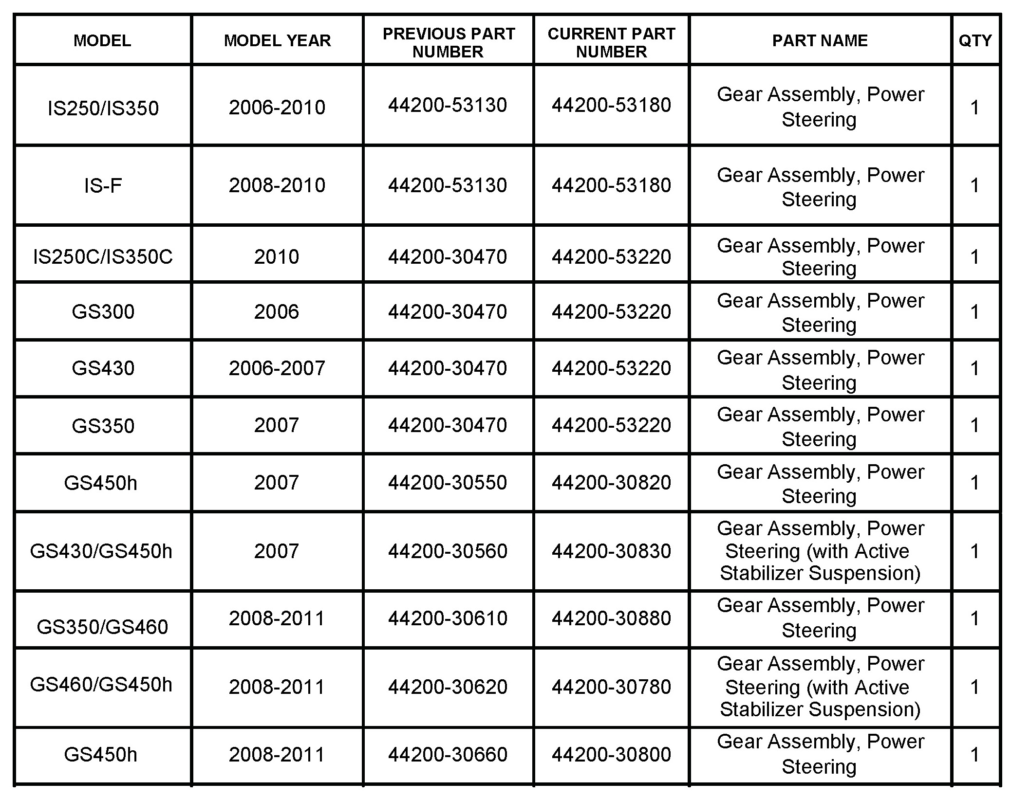 - 2007 / 2008 / 2009 / 2010 / 2011 2WD GS350/430/460: