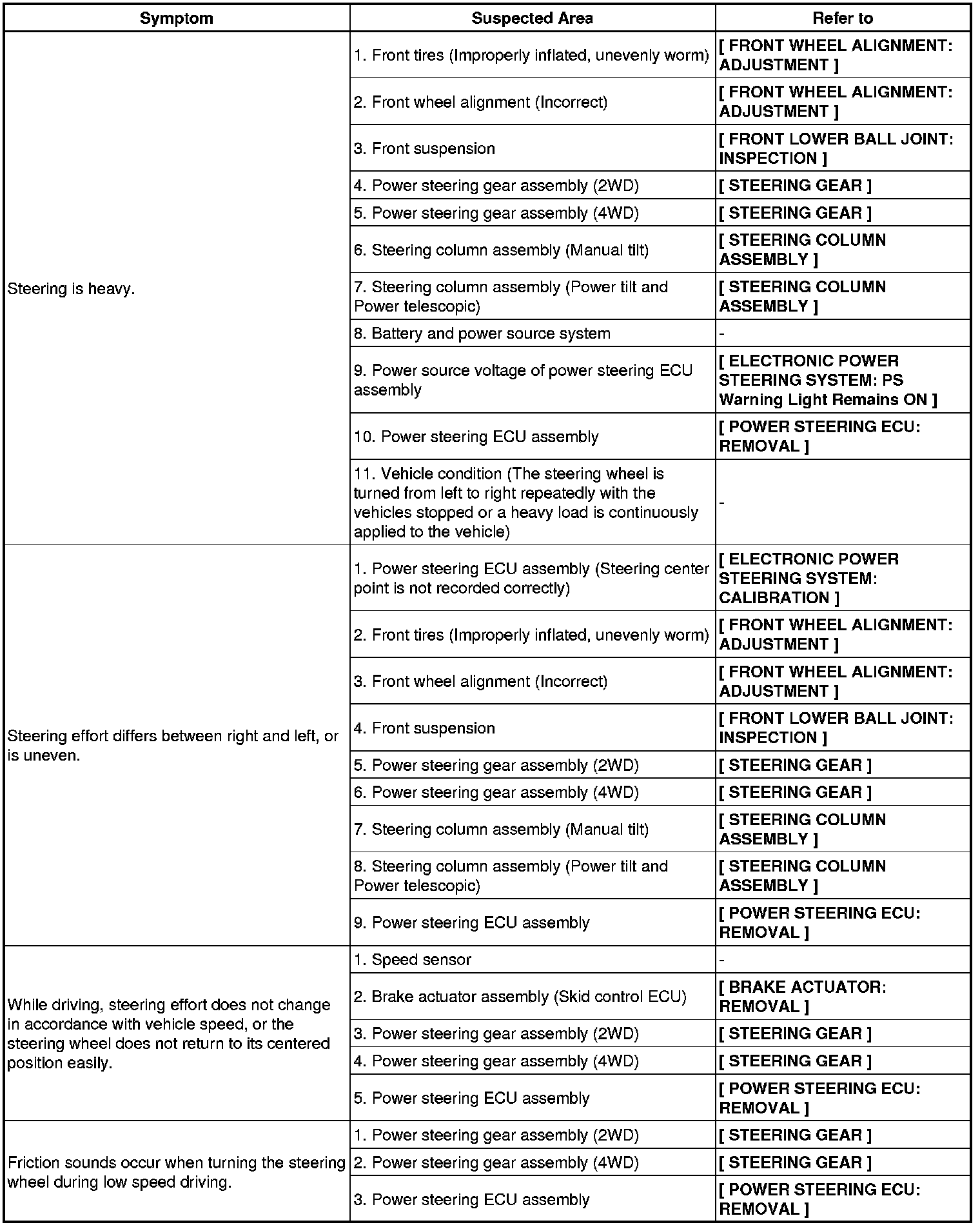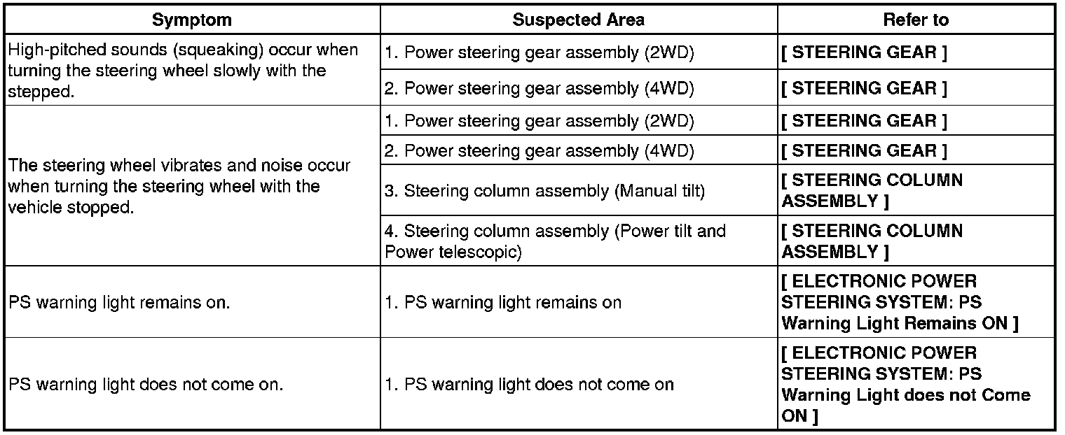 : ELECTRONIC POWER STEERING SYSTEM: PROBLEM SYMPTOMS TABLE