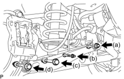 (d) Remove the bolt, nut, and washer on the rear suspension member side, and remove the rear No. 2 suspension arm.