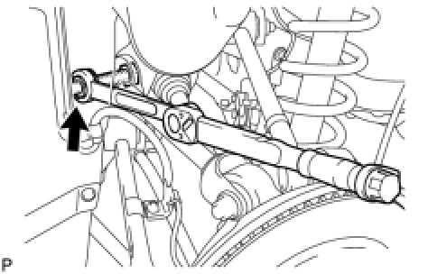 (b) Using a ball joint lock nut wrench (19 mm), fully tighten the nut on the rear upper No. 1 control arm assembly.
