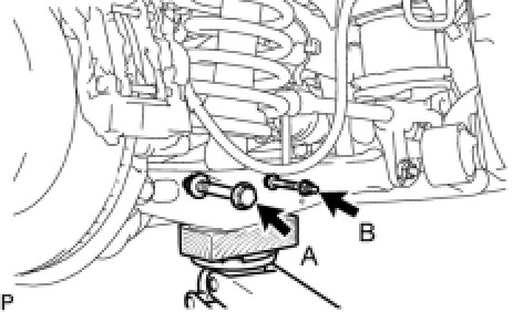 (a) Fully tighten the bolt (A) holding the rear shock absorber with coil spring.