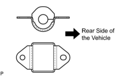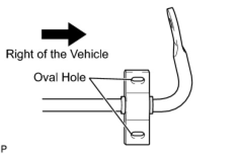 (a) Insert the rear stabilizer bar between the rear suspension member and exhaust tailpipe assembly so that the oval holes are on the right of the vehicle.