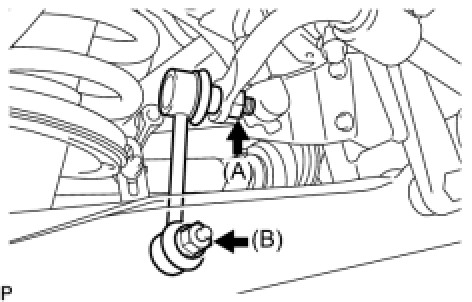 (b) Remove the bolt, nut (B), and the stabilizer link assembly LH.
