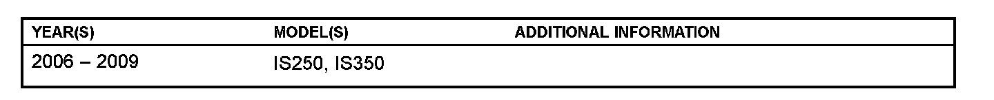Some 2006 - 2009 model year IS vehicles equipped with F-Sport rear coil springs may exhibit a clicking noise from the rear suspension when driving. New rear coil spring assemblies are available to improve this condition. Follow the repair procedure in this TSIB to replace the rear coil spring assemblies.