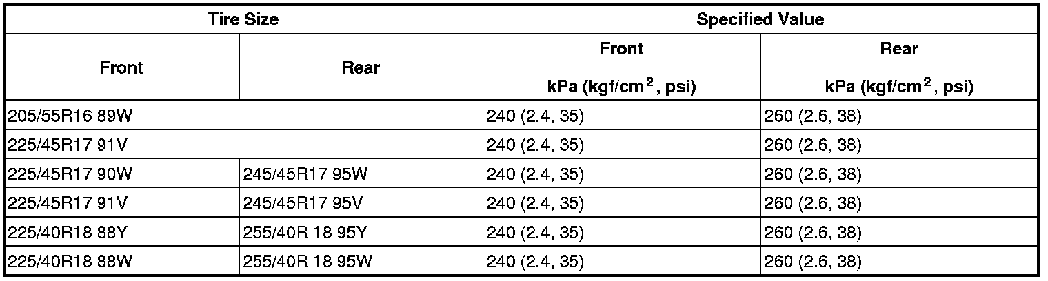 SERVICE SPECIFICATIONS: TIRE AND WHEEL: SERVICE DATA