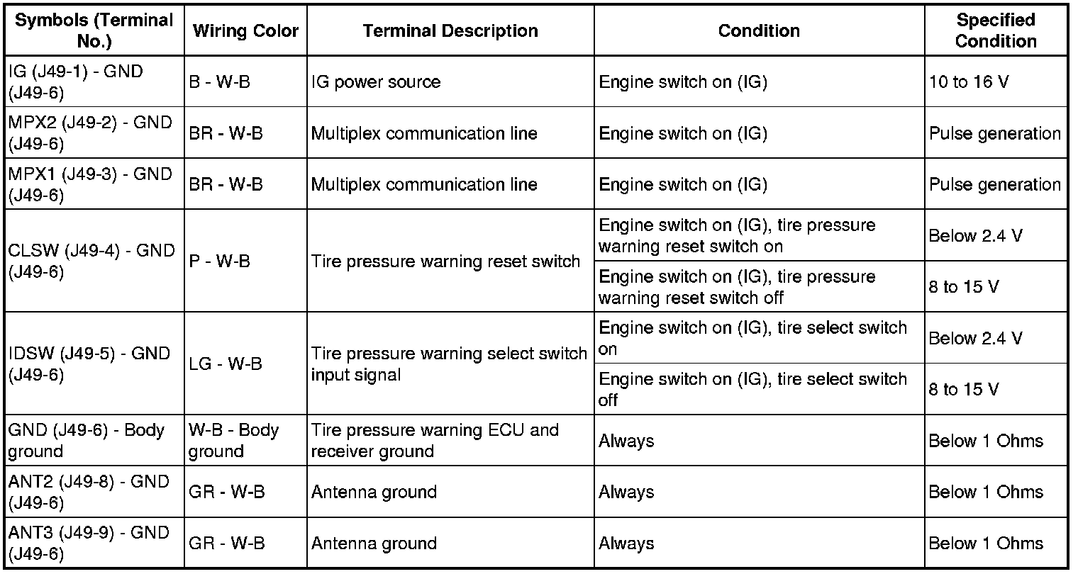 TIRE AND WHEEL: TIRE PRESSURE WARNING SYSTEM: TERMINALS OF ECU