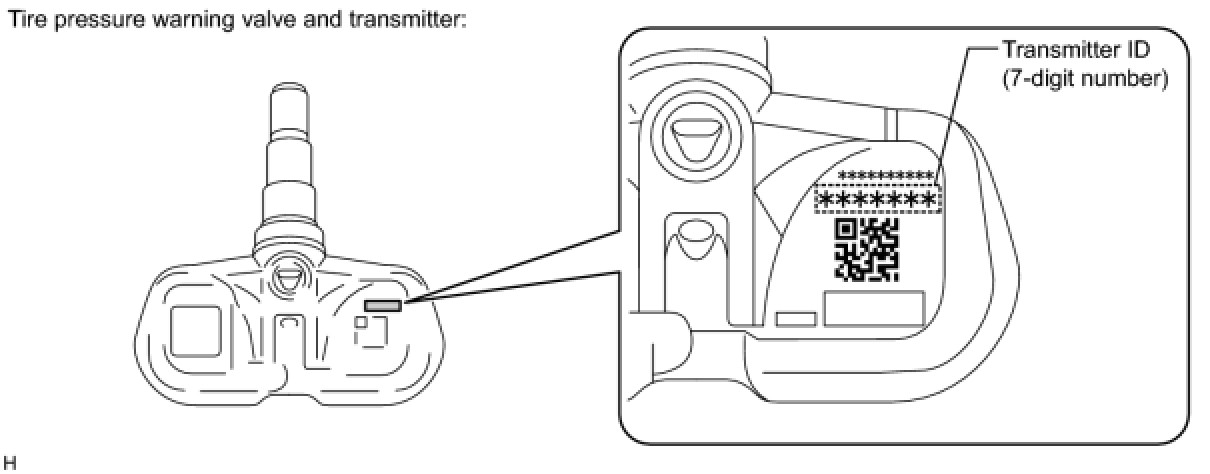 The transmitter ID is written on the tire pressure warning valve and transmitter. It will be unable to be read after installing the tire pressure warning valve and transmitter on the tire and wheel. Therefore, take a note of the transmitter ID before installing the tire pressure warning valve and transmitter.