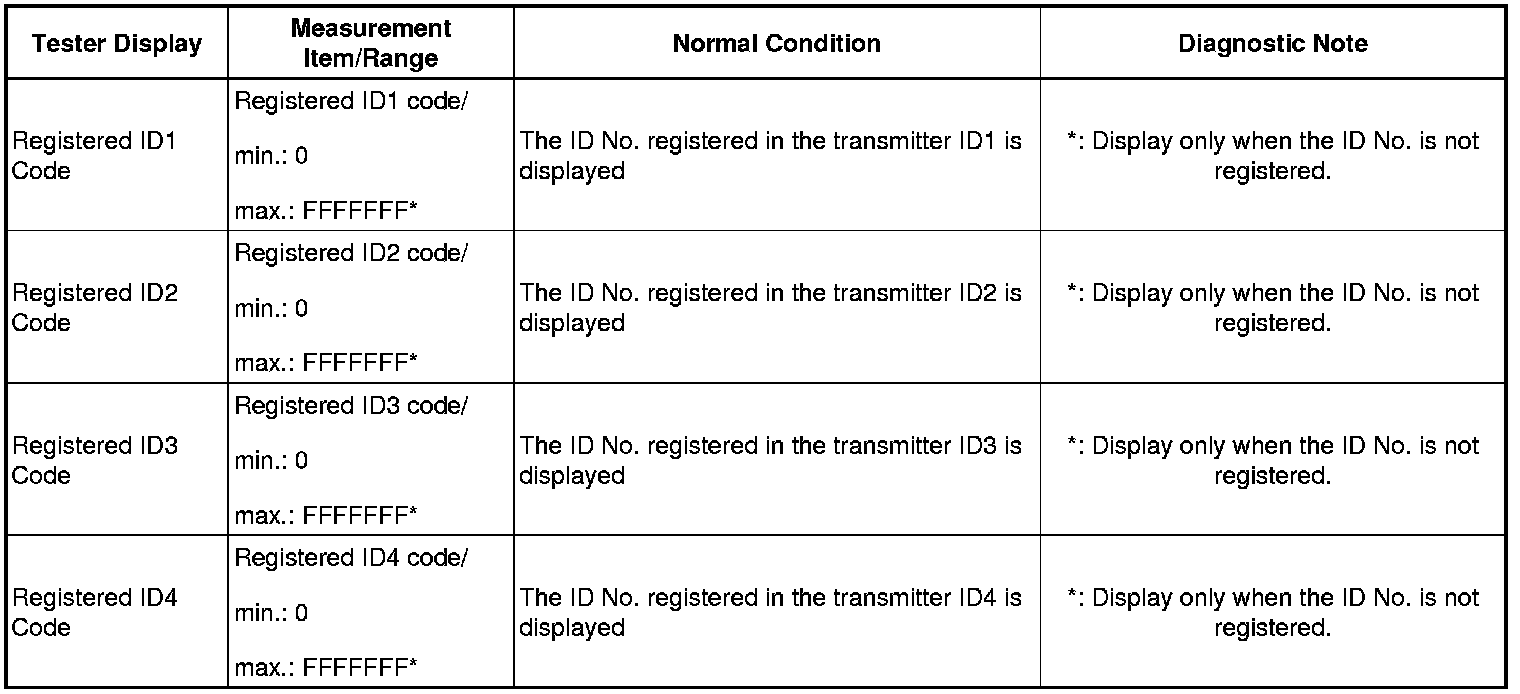 (1) Read the registered transmitter IDs that are stored in the old ECU and receiver using the Techstream and note them down. Enter the following menus: Chassis / Tire Pressure Monitor / Data List.