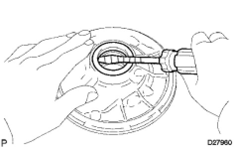 (a) Using a screwdriver with its tip wrapped with tape, remove the oil seal.