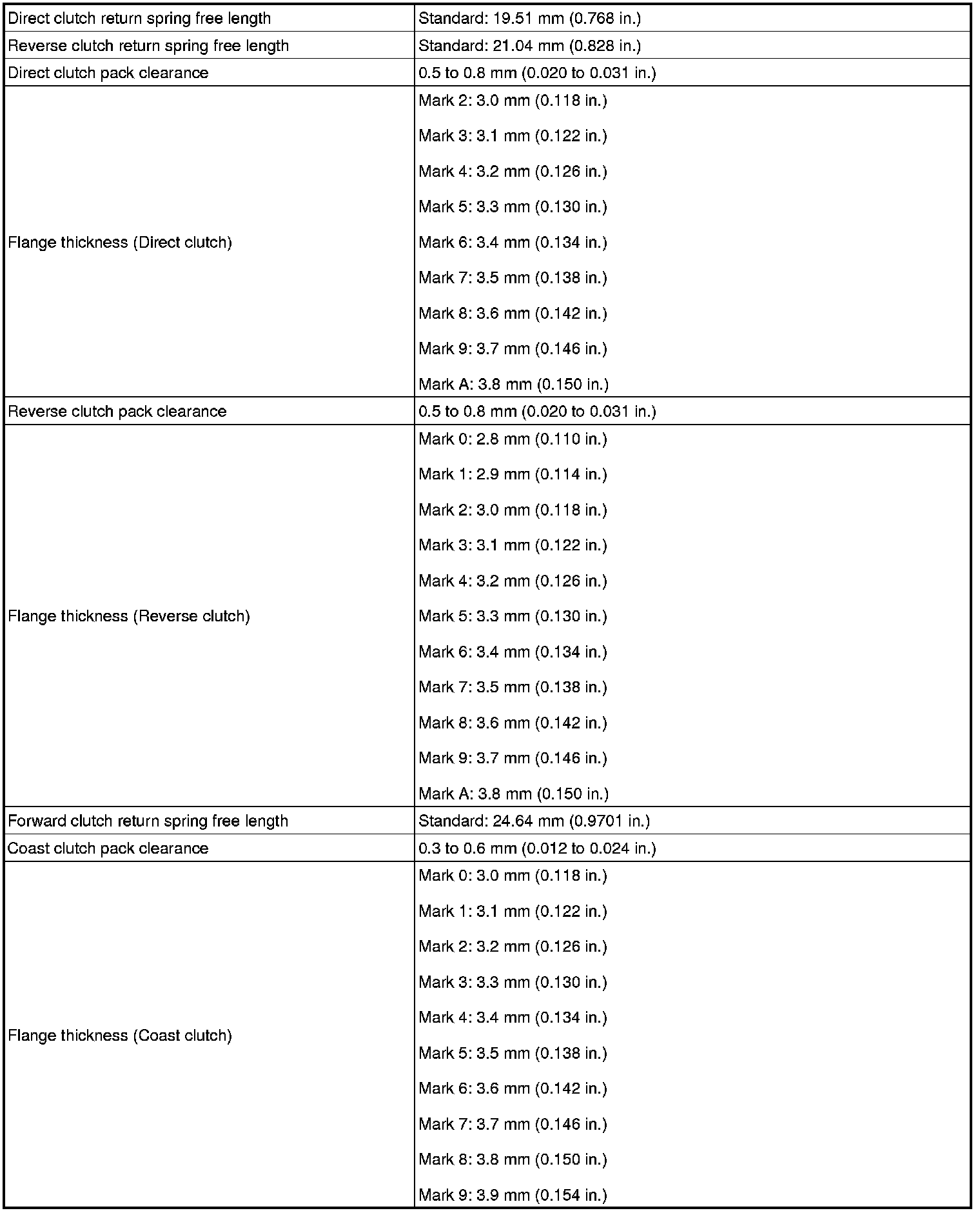 - All shift point values indicated in the above tables are actual values. Therefore, if checking a shift point with a chassis dynamometer, keep in mind that there is a range of error in the chassis dynamometer indication.