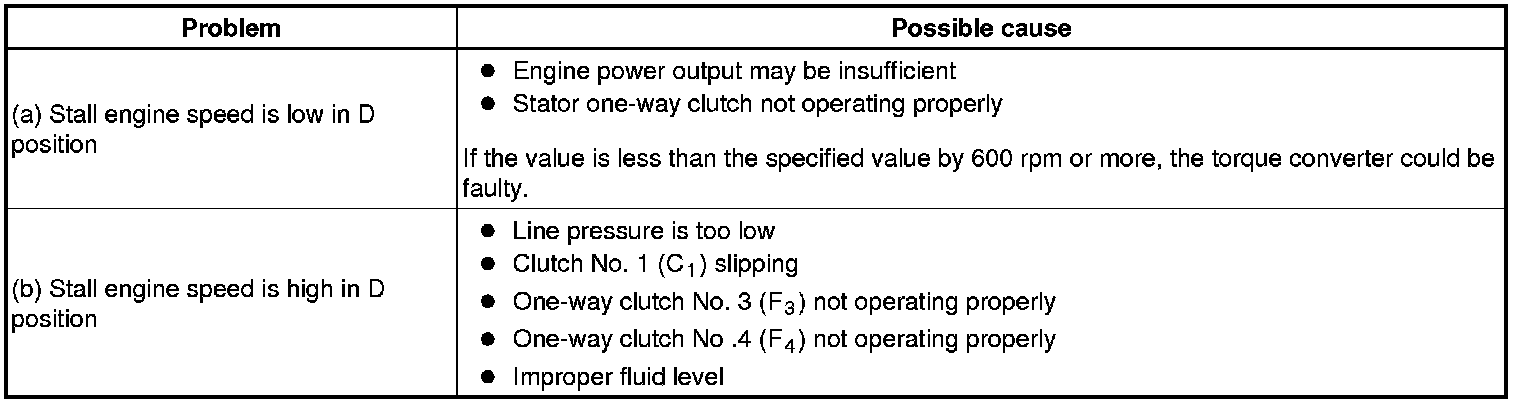 The object of this test is to check the overall performance of the transmission and engine by measuring the stall speeds in the D position.