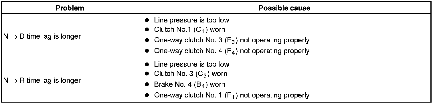 (5) Shift the lever from N to D position. Using a stop watch, measure the time from when the lever is shifted until the shock is felt.