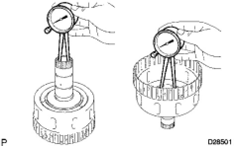 If the inside diameter is greater than the standard inside diameter, replace the reverse clutch hub.