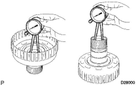 (a) Using a dial indicator, measure the inside diameter of the clutch hub bushing.