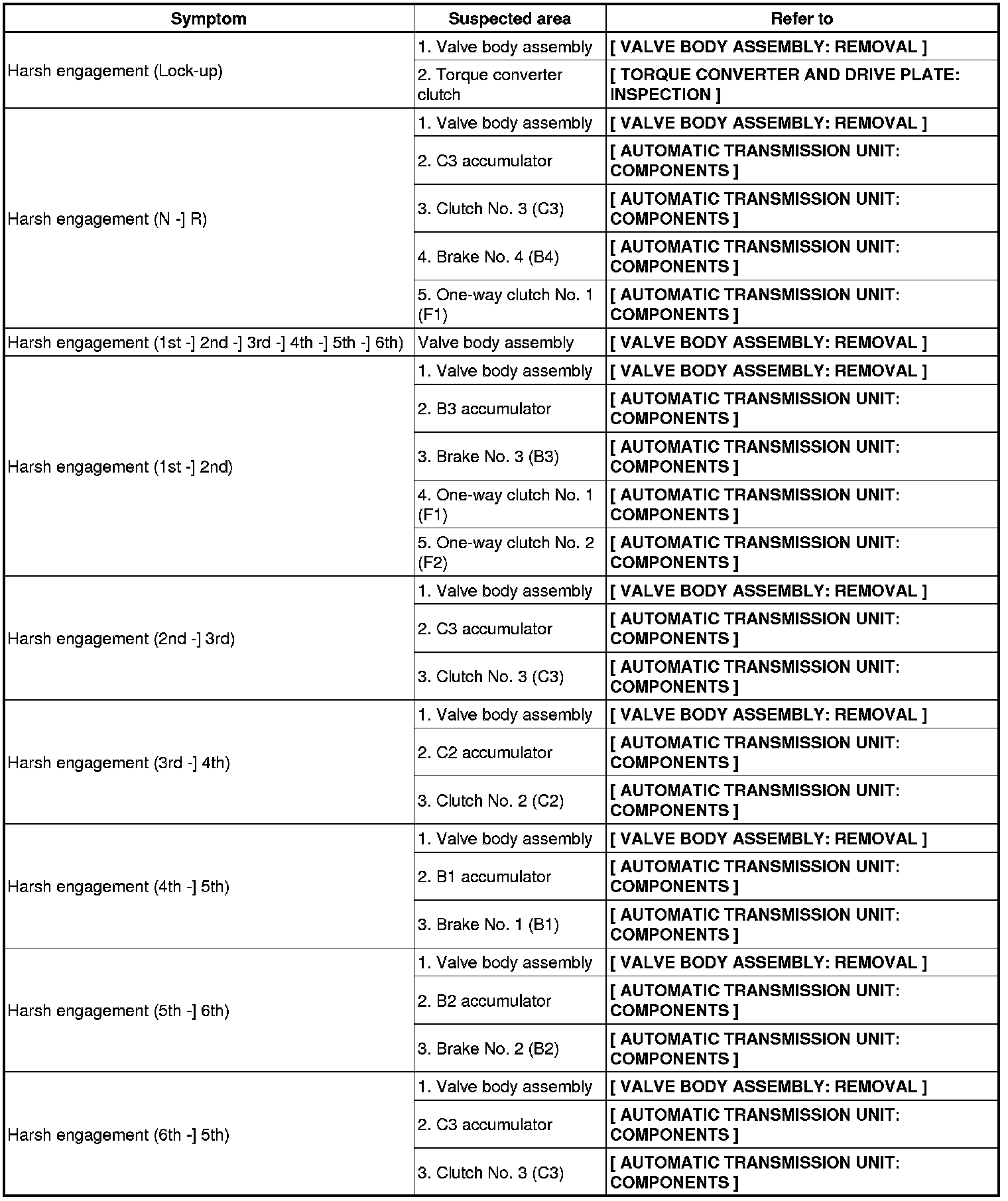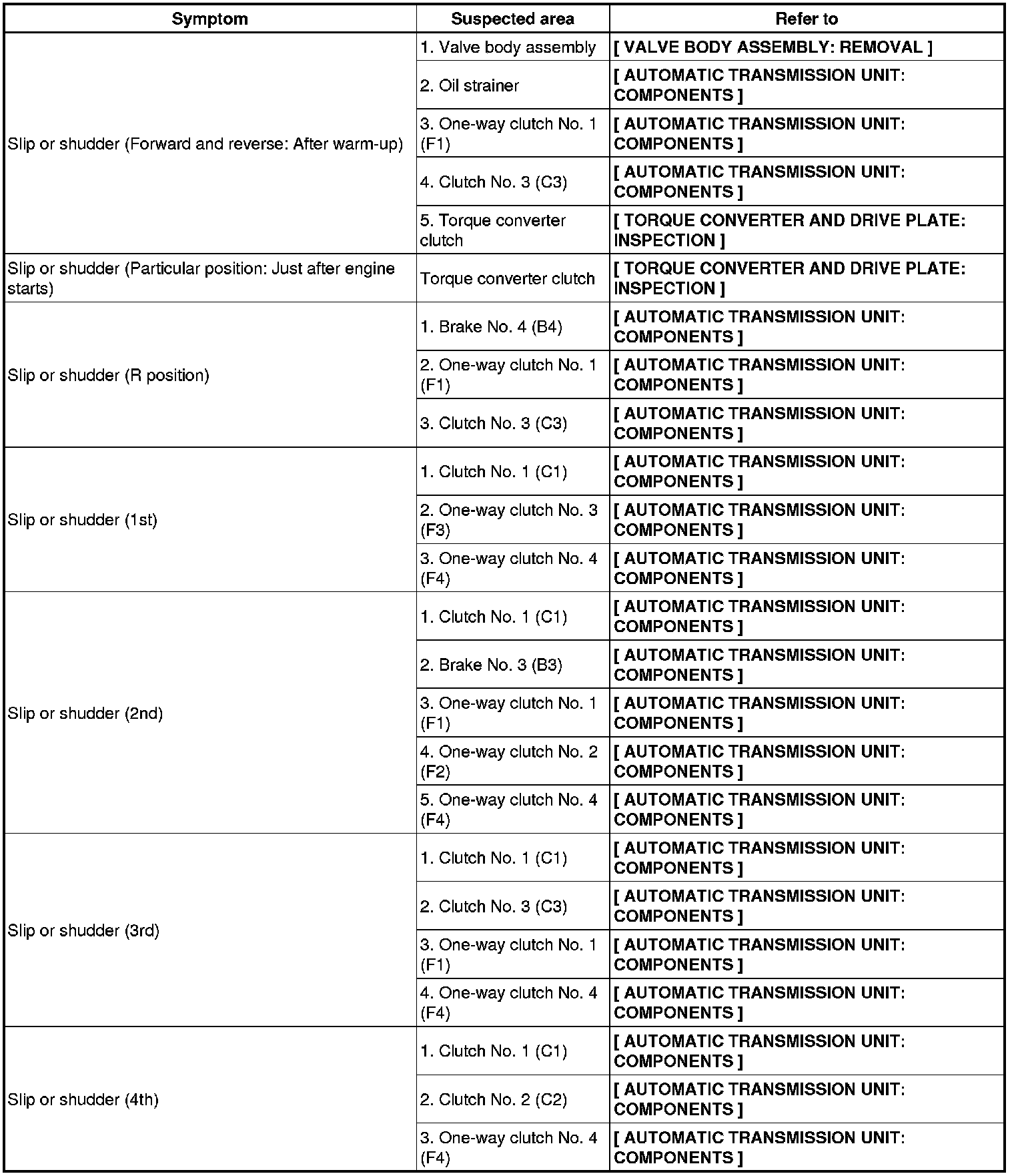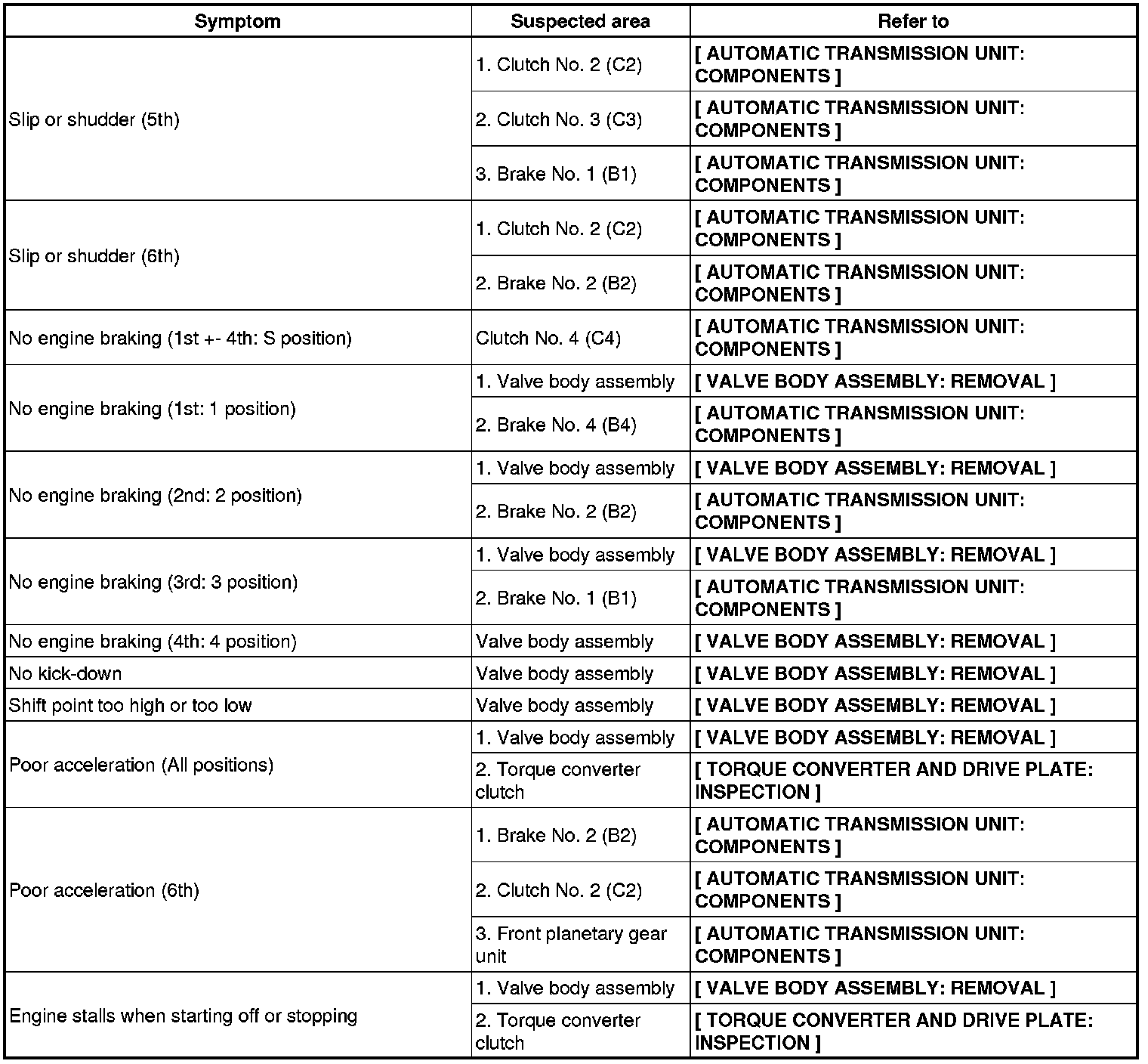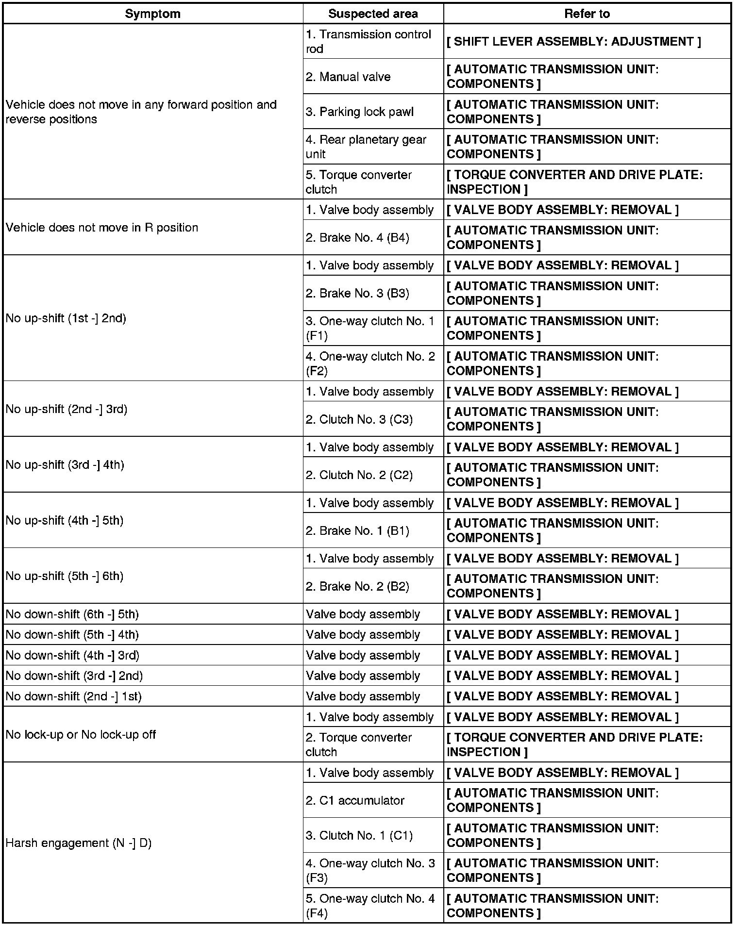 A760E AUTOMATIC TRANSMISSION: AUTOMATIC TRANSMISSION SYSTEM: PROBLEM SYMPTOMS TABLE