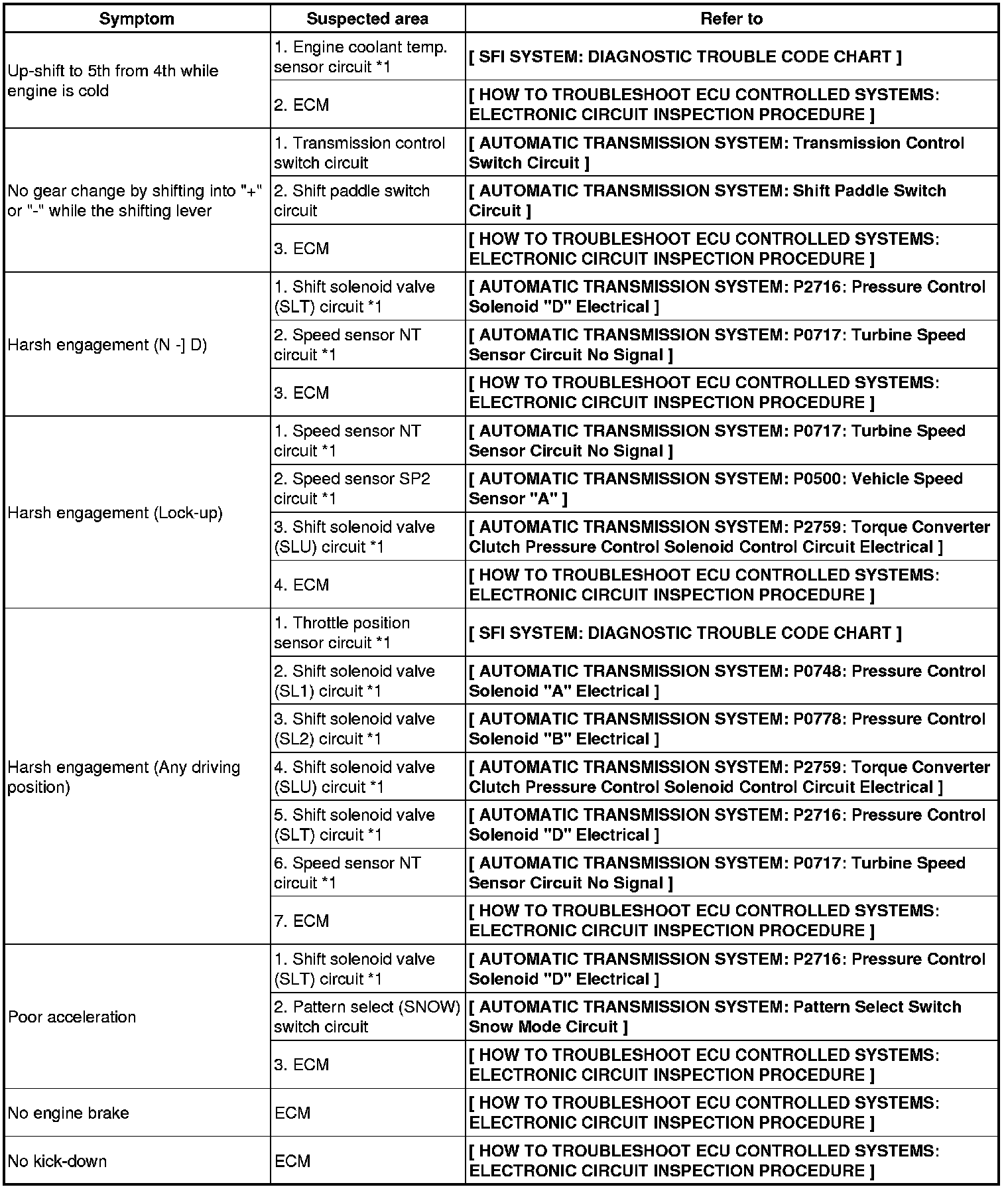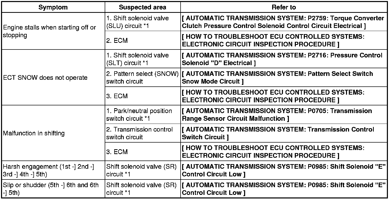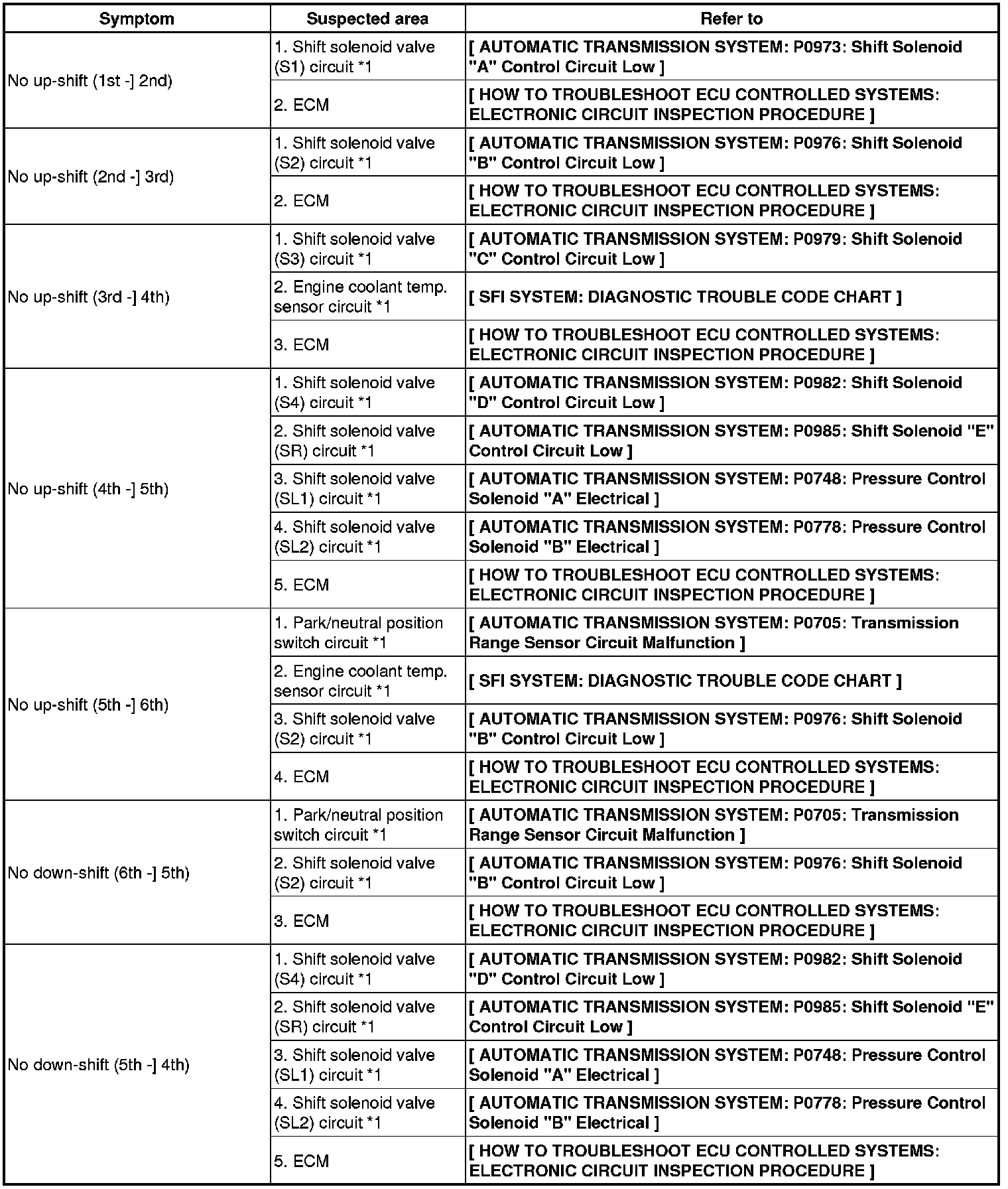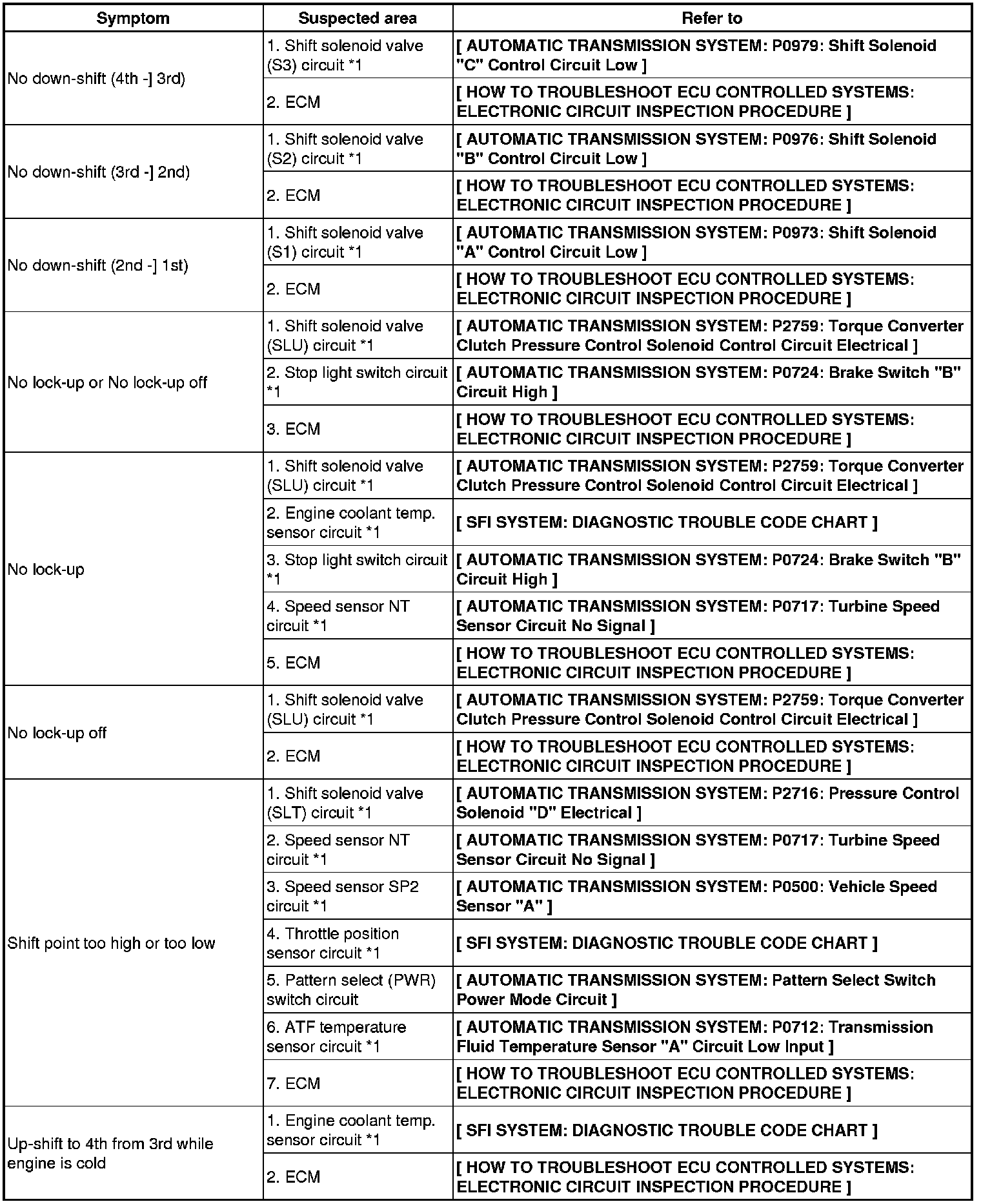 A760E AUTOMATIC TRANSMISSION: AUTOMATIC TRANSMISSION SYSTEM: PROBLEM SYMPTOMS TABLE