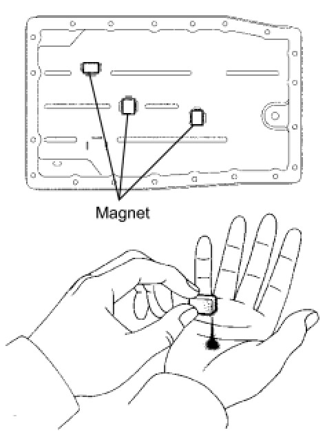 Carefully look for the foreign objects and particles in the pan and on the magnets to guess the type of wear which might be found in the transmission.