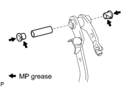 (a) Apply MP grease to the inner, outer and end surfaces of 2 new pedal bushings.
