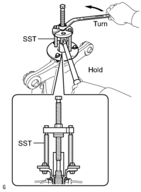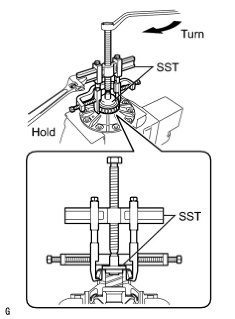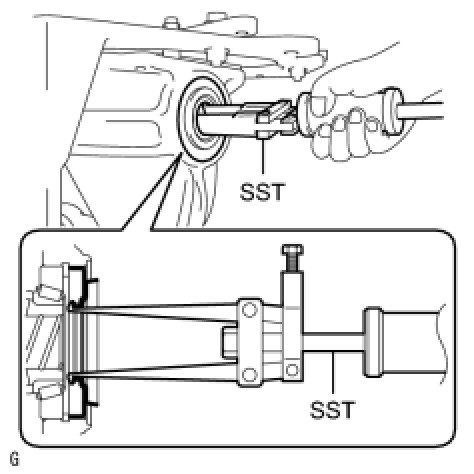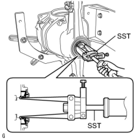 - Hook the SST claw from the dent of the differential case to the bearing inner race.