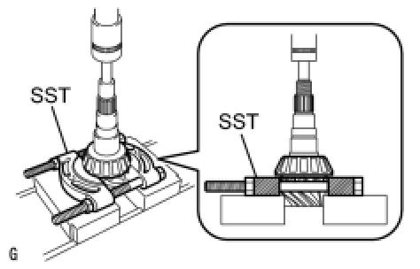 (a) Using SST and a press, remove the rear drive pinion rear tapered roller bearing inner race from the drive pinion.