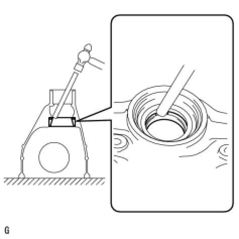 (b) Using a brass bar and a hammer, remove the rear drive pinion rear tapered roller bearing outer race from the differential carrier.