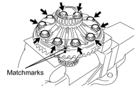 Observe the dial indicator to ensure that the shape of the differential carrier does not change more than 0.2 mm (0.008 in.).